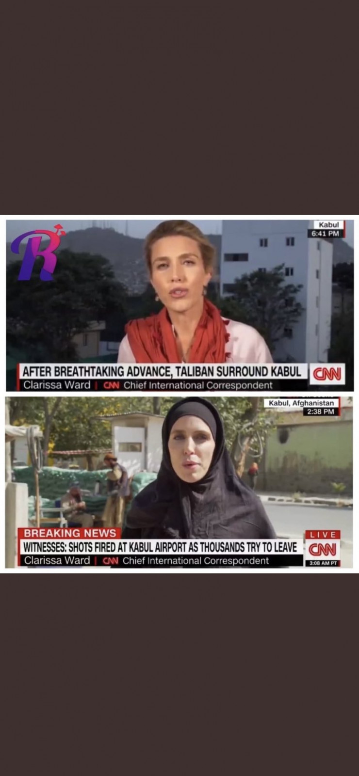 Другой пример манипулирования реальной информацией сделали из фотографий репортера CNN Клариссы Уорд. Указывается, что в начале репортажа она якобы освещает события с непокрытой головой, а затем надевает хиджаб, после захвата власти талибами.