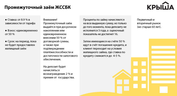 Чтобы не терять время и скорее начать платить за собственное жилье, можно получить промежуточный кредит по менее заманчивой ставке, причем на всю сумму покупки жилья. То есть депозит продолжит "крутиться" в ЖССБК под 2 процента, пока вы будете выплачивать всю сумму за квартиру под 10 процентов (величина указана приблизительно. Номинальные ставки заявлены на уровне 8-9 процентов).