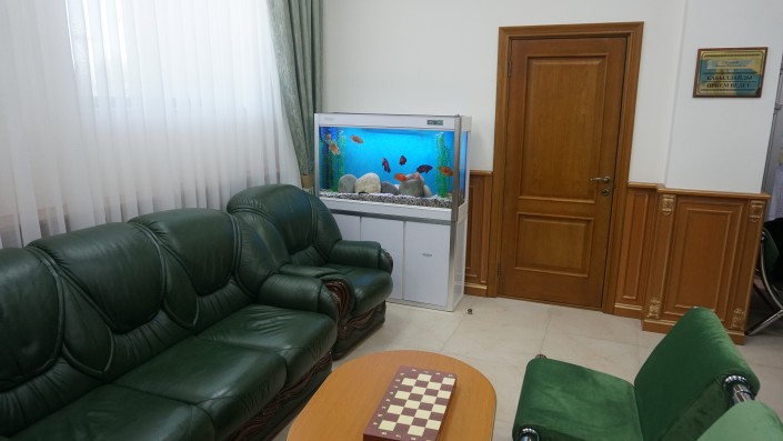 "Это зал ожидания. Мы его продумали в таких светлых, домашних тонах. Удобно, аккуратно, тепло, предусмотрены все бытовые моменты. Рядом консультант, который предоставит нужную информацию, телевизор есть, шахматы, можно партию сыграть, пока ждешь, - это все рекомендации психологов. В такой обстановке должны быть такие атрибуты. Я тоже с этим согласен", - отмечает Нурсерик Шарипов.