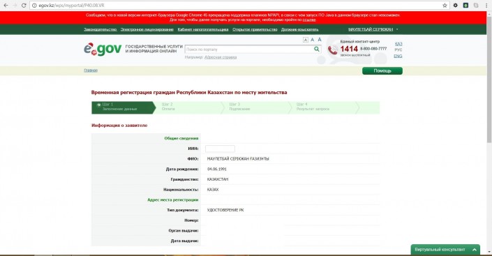 На портале электронного правительства РК появилась возможность пройти временную регистрацию на срок от одного месяца, передает корреспондент Tengrinews.kz. Отметим, ранее сотрудники центров обслуживания населения говорили, что временно зарегистрировать жильца можно минимум на три месяца.