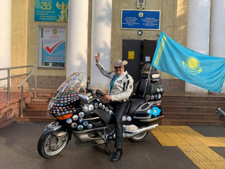 ​На выборы традиционно на своем мотоцикле приехал известный байкер Дмитрий Петрухин, который на своем "стальном коне" объехал почти весь мир.