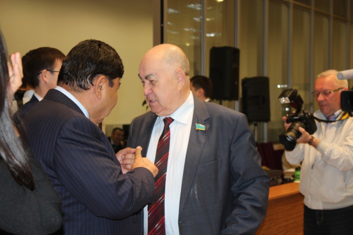 Депутат Мажилиса Парламента (фракция КНПК) Владислав Косарев (справа) со своим бывшим коллегой экс-депутатом, а ныне фермером Темирханом Досмухамбетовым.