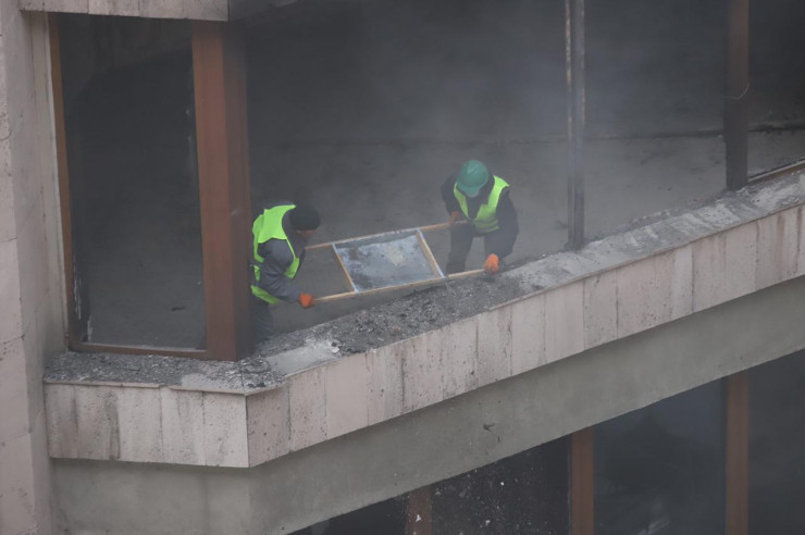"Здание городского акимата было наиболее подвержено разрушению в ходе мародерства и беспорядков. Поэтому мы полностью будем восстанавливать его. Объем работы достаточно большой. Вы знаете, что в течение двух дней конструкции здесь были подвержены тепловой нагрузке, здесь был пожар. Сейчас все несущие конструкции должны быть открыты, чтобы провести техническое обследование", - сказал руководитель управления Сапар Нурашев.