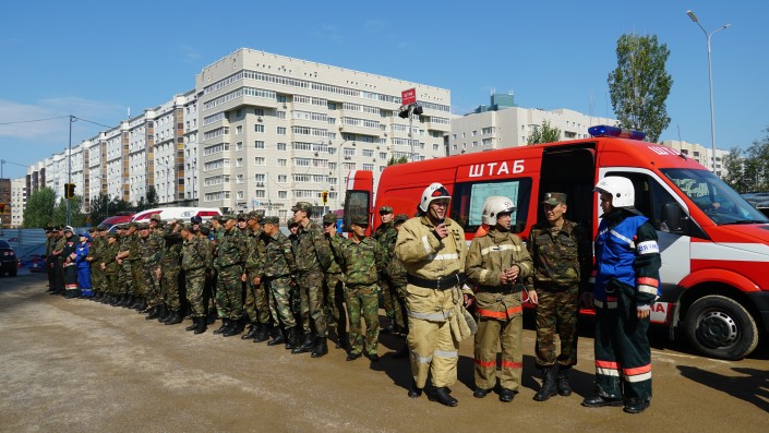 Условный пожар локализовали, угрозы распространения огня нет. Рабочим разрешили возвращаться на свои места.