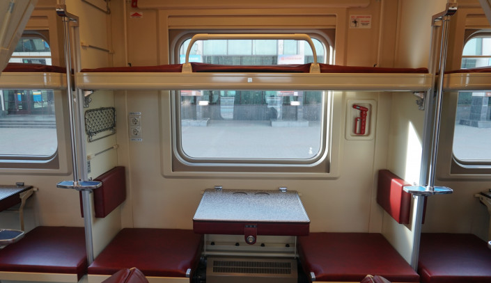 Автономно работают два биотуалета, которые экипируются 1200 литрами воды. Для проводника есть душевая кабина.
