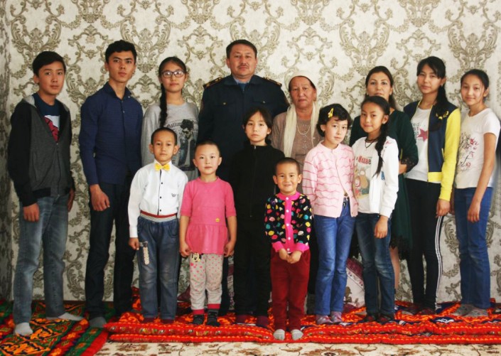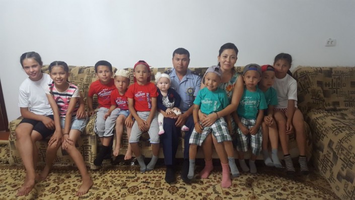 Другой его коллега из Жамбылской области тоже расширяет свой мини-детский дом. Инспектор дорожной полиции Галым Арыстанбаев усыновил восьмерых детей. 39-летний сержант полиции и его супруга Алия воспитывают троих родных сыновей. Полицейский рассказывает, что всегда мечтал о девочке. Сначала супруги хотели взять на воспитание одного ребенка. Но так получилось, что на воспитание семья взяла сразу пятерых детей разного возраста.