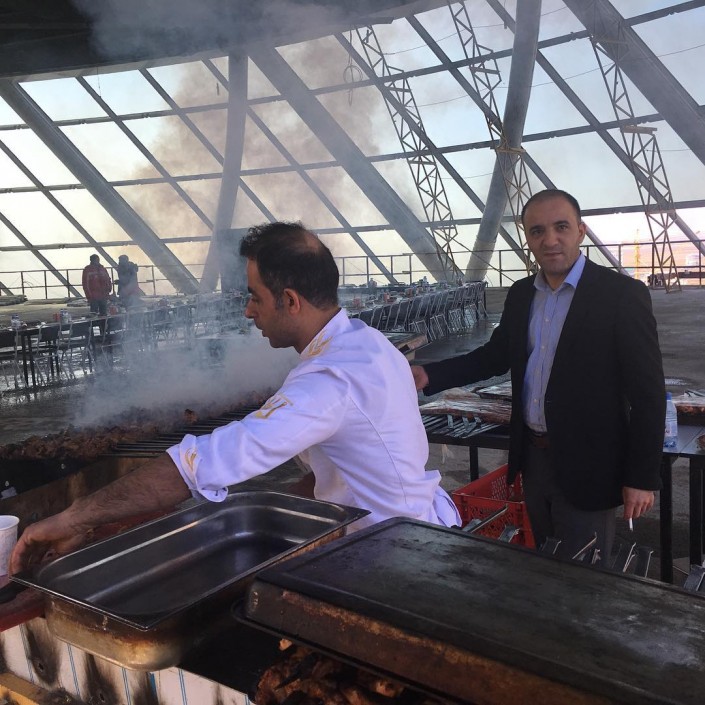 По информации дирекции строительства "Астана ЭКСПО-2017", коллектив компании "Сембол" устроил празднование в честь Курбан-айта. Для обслуживания пригласили кейтеринг турецкого кафе "Жасмин", шеф-повар и администратор которого и изображены на фото.