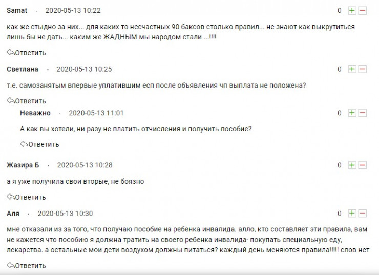 Некоторые люди сообщают, что потеряли доход на время карантина, испытывают трудности, но им отказывают в выплате.