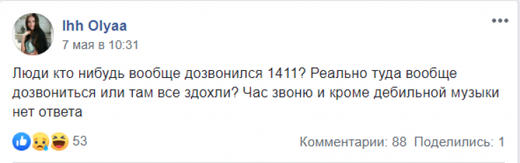 "Люди, кто-нибудь вообще дозвонился на 1411? Туда реально дозвониться? Кроме ответа и дебильной музыки, нет ответа", - возмущена девушка.