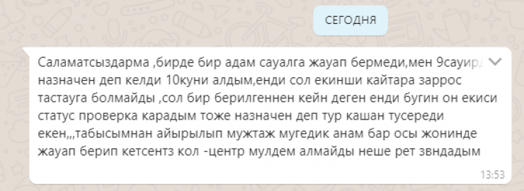 В социальных сетях общественники создали специальные группы, где люди делятся проблемами, связанными с 42 500 тенге. И таких публикаций накопилось в сети немало. Люди жалуются, что не могут получить ответов на свои вопросы.