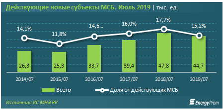 Их доля от всех действующих субъектов МСБ за год сократилась с 17,7 процента до 15,2 процента.