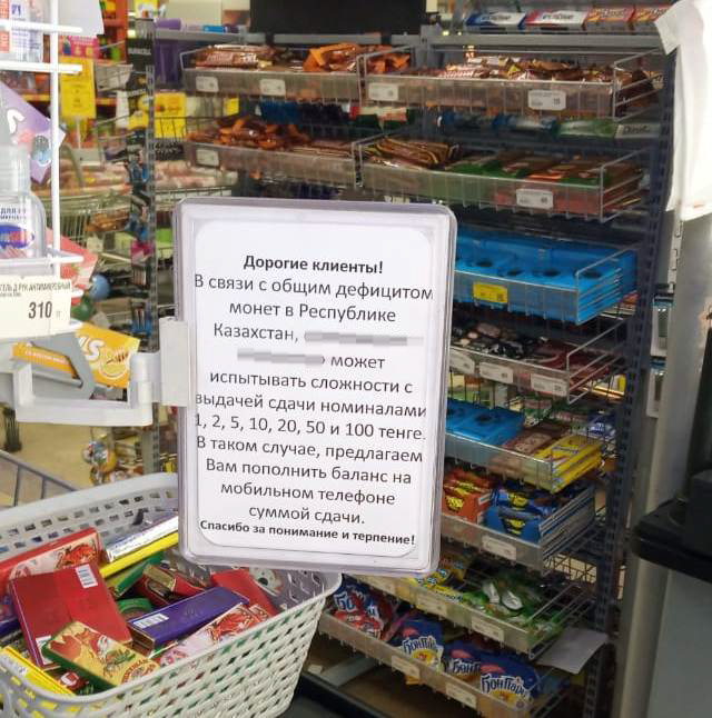 Казахстанцы вновь обратили внимание на объявления о нехватке монет в торговых точках, передает корреспондент Tengrinews.kz.