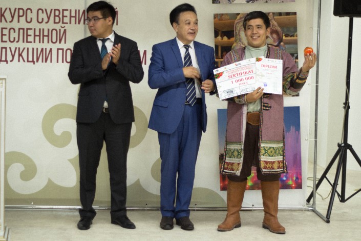 Второе место и приз в 700 тысяч тенге поделили между собой Айгуль Жансерикова с шелковым шарфом с войлочной композицией из яблок и Роза Сарсебаева с куклой в национальном стиле.