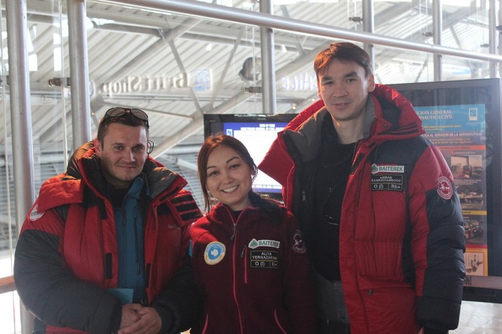 Утром 14 декабря из Алматы в Чили вылетели Юрий Юшин и Даулет Шарипов. Через несколько дней участники экспедиции присоединятся к Сагимбаеву и Галимбекову. Вчетвером они на лыжах пройдут свыше 200 километров, чтобы добраться до Южного полюса земли - точки пересечения оси вращения Земли с ее поверхностью в Южном полушарии. Южный полюс диаметрально противоположен Северному полюсу, расположенному в Северном Ледовитом океане. Любая другая точка поверхности Земли находится всегда в северном направлении по отношению к Южному полюсу.