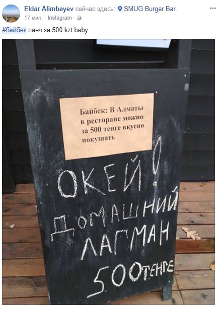 После заявления Бауыржана Байбека о том, что иностранцы могут вкусно поесть в ресторанах Алматы за 500 тенге, городские заведения решили поддержать акима. Некоторые точки общепита даже запустили рекламные акции.