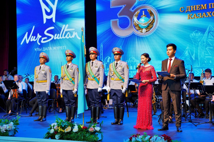 Для всех гостей был организован праздничный концерт с участием звезд казахстанской эстрады, эстрадно-симфонического оркестра "Астана" и хора Департамента полиции Нур-Султана.