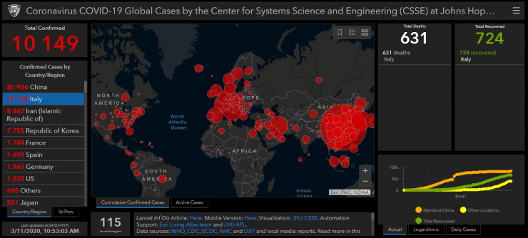 С 12 марта итальянцам и иностранным гражданам, прибывающим из этой страны, будет запрещено приезжать в Казахстан. По заболеваемости Италия вышла на второе место после Китая, а по количеству смертей - на первое место. На 11 марта там заболели 10 149 человек, из них - 631 смерть и 724 человека выздоровели, сообщает Университет Джонса Хопкинса.