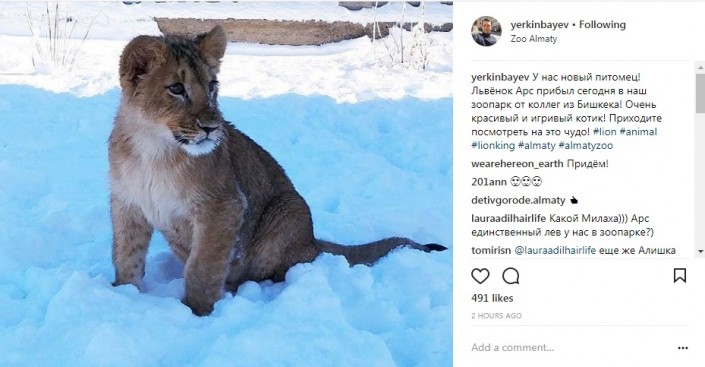 В зоопарке Алматы появился новый питомец - львенок, передает корреспондент Tengrinews.kz. О радостной новости сообщил на своей странице в Instagram директор учреждения Ержан Еркинбаев.