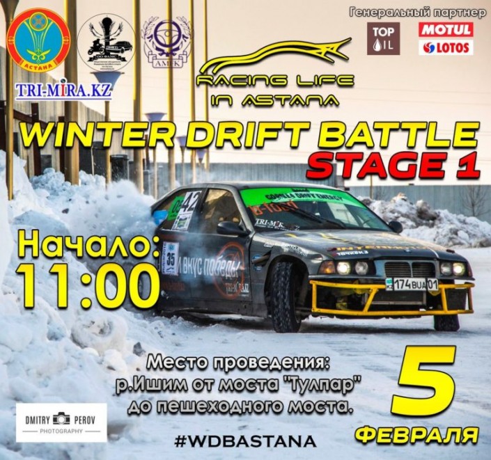 Воскресное утро подарит столице первый зимний дрифт-баттл. Место проведения: покрытая толстым слоем льда река Ишим от моста "Тулпар" до пешеходного моста. Начало в 11.00.