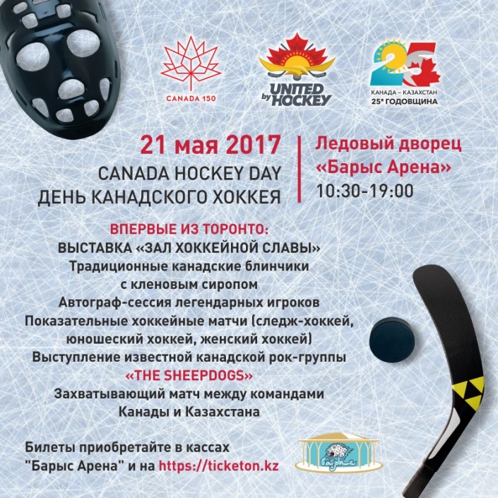 В Астане в это воскресенье состоится Canada Hockey Day (День канадского хоккея). В ледовом дворце "Барыс Арена" организаторы обещают провести фото- и автограф-сессии с легендарными игроками хоккея, дегустацию традиционных канадских блинчиков с кленовым сиропом и показательные хоккейные матчи. Кроме того, в программе планируется лотерея с розыгрышем ценных призов и памятных сувениров и выступление известной канадской рок-группы The Sheepdogs.