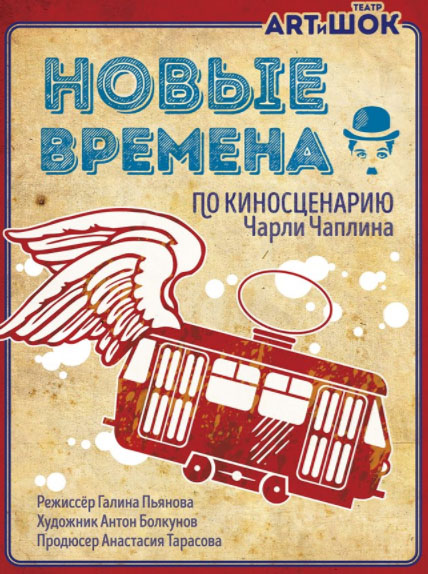 В театре "АРТиШОК" состоится показ спектакля "Новые Времена", поставленного по киносценариям Чарли Чаплина. "Повесть об индустрии, личной предприимчивости и о человечестве, мечущемся в погоне за счастьем". Режиссер Галина Пьянова.