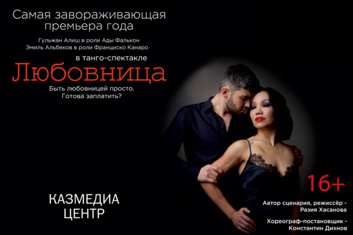 Спектакль "Любовница" Разии Хасановой, проходящий на площадке "Казмедиацентра", - первая в Казахстане постановка, которая в чистом виде являет собой "театр танца" и которая объединила на одной сцене танго, страсть, любовь, месть, раскаяние и забвение.