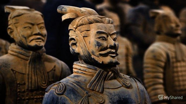 "Терракотовая армия" - принятое название захоронения 8 099 полноразмерных терракотовых статуй китайских воинов и их лошадей у мавзолея императора Цинь Шихуанди в Сиане. По замыслу императора статуи должны были сопровождать его в потустороннем мире. Армия глиняных воинов покоилась в боевом построении в склепах. Фигуры воинов являются произведением искусства, поскольку выполнены в индивидуальном порядке, вручную и с использованием различных методик. Каждая отдельная статуя имеет свои уникальные черты и даже выражение лица.