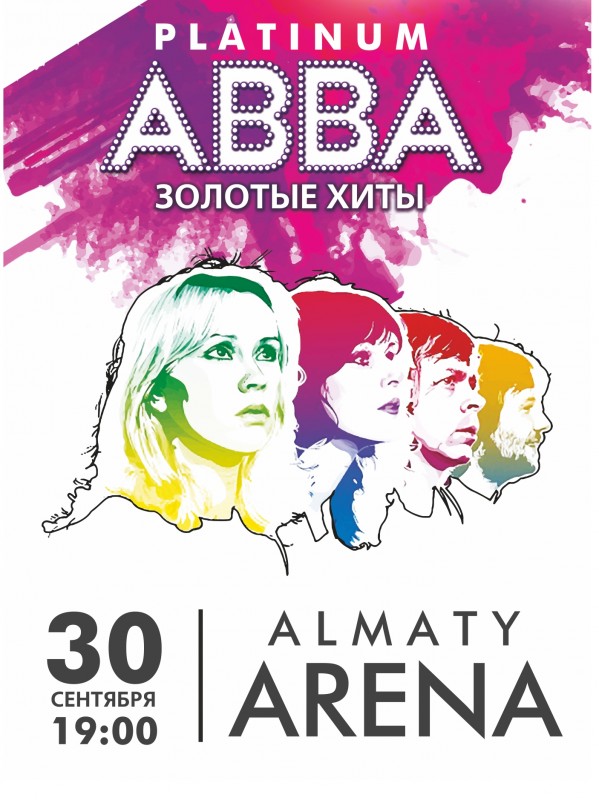 30 сентября на сцене "Алматы Арена" по случаю празднования Дня города и при поддержке акимата Алматы - ваши самые любимые хиты от группы ABBA PLATINUM из Великобритании.