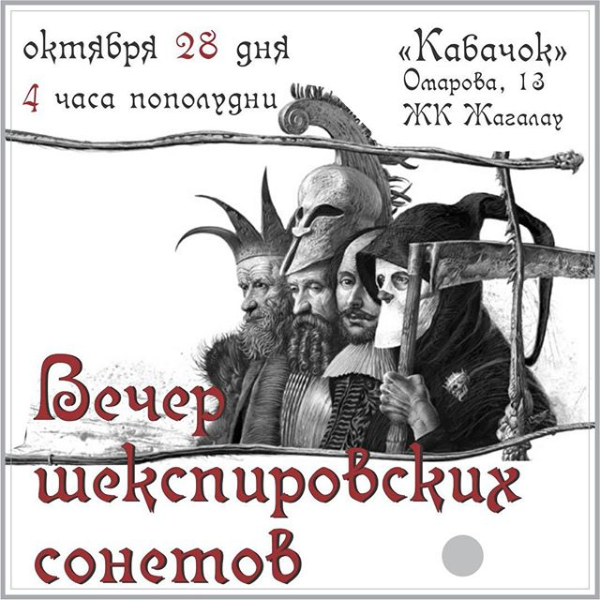 "Этим ключом отпирается сердце поэта", - писал поэт Уильям Вордсворт о сонетах Шекспира. В эти выходные астанчане могут насладиться публичным чтением шедевров английского драматурга в баре "Кабачок" в ЖК "Жагалау".