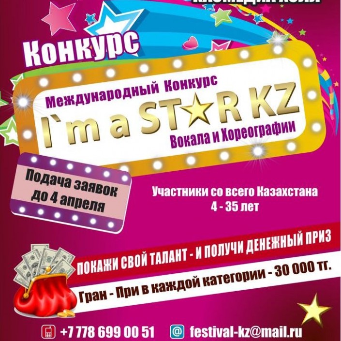 В холле Казмедиацентра пройдет фестиваль-конкурс лучших хореографических и вокальных коллективов Астаны - I’m a STAR KZ. Зрителей ждут яркие номера, красочные выступления в современных и народных стилях, а также модные постановки!