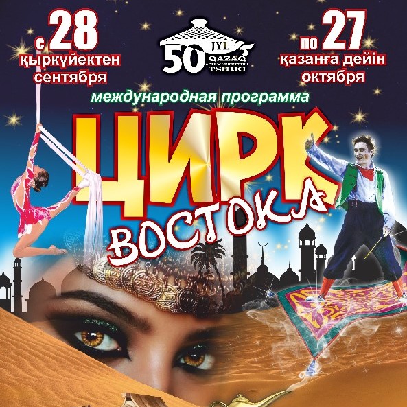 В Алматинском цирке пройдет магическое представление "Цирк Востока". Зрителей ждут головокружительные трюки, удивительные превращения, дрессированные животные, море смеха и позитива. Тут гости цирка смогут окунуться в магию Востока.