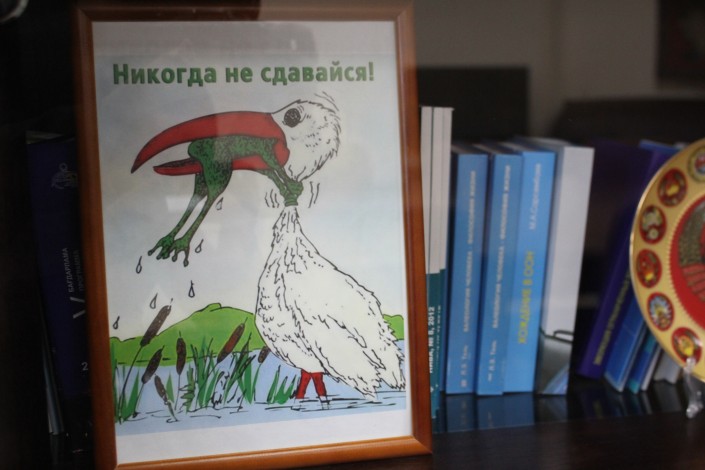 Возле окна два портрета: Нурсултана Назарбаева и Динмухамеда Кунаева.