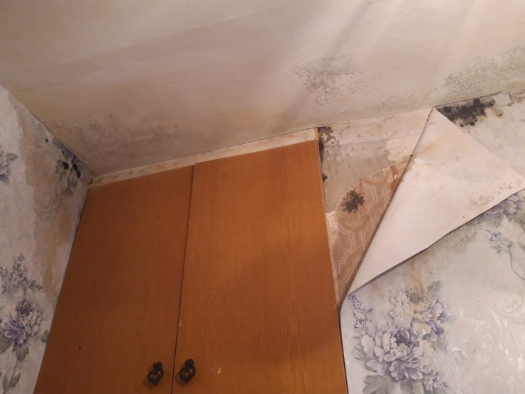 В больницу района Беимбета Майлина Костанайской области врач-фтизиатр Сергазы Бердиханов приехал четыре года назад вместе с супругой, которая тоже по специальности врач. Молодой семье выделили двухкомнатную квартиру. Они сделали в ней небольшой косметический ремонт, а с первыми осадками заметили, что течет кровля. Из-за этого обои отошли, а на стенах появилась плесень.