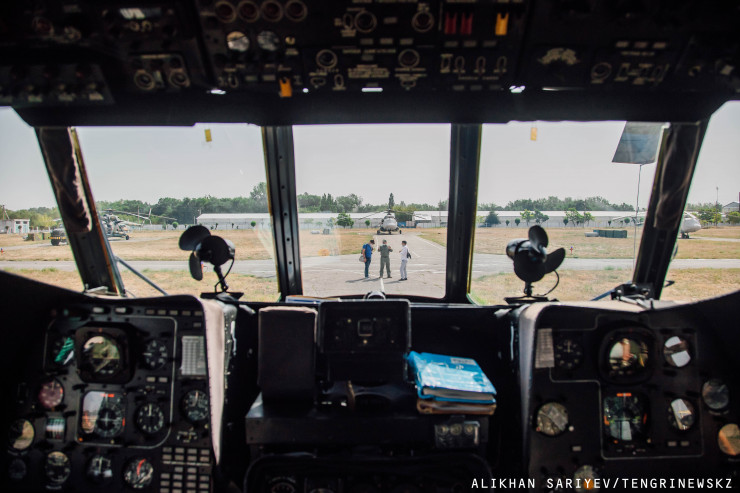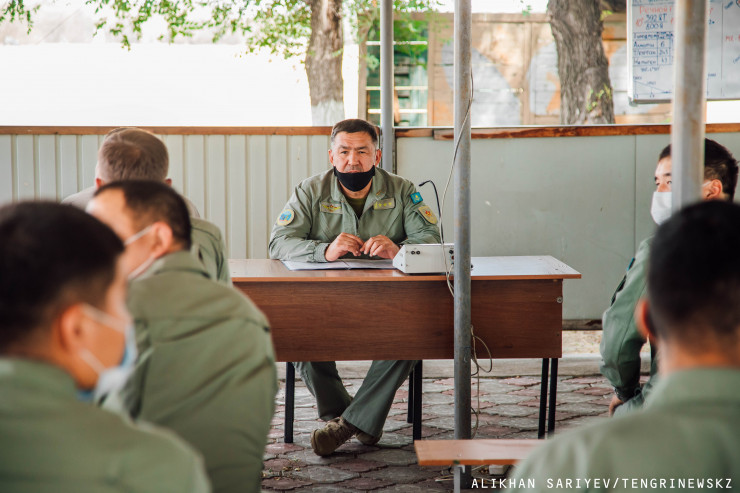 "У каждого экипажа своя задача. Кто-то летает от 50 метров до 1200 метров в зависимости от их летного задания. Вы (обращаясь к журналистам - прим.) летали над нашим аэродромом. Это были полеты по приборам. У летчика закрывают полностью шторку, и он, не видя неба и земли, только летит по приборам, доверяя приборам. Выполняет полетные задания. Ему помогает летчик-инструктор", - рассказал командир войсковой части полковник Нурлан Байдуллаев.