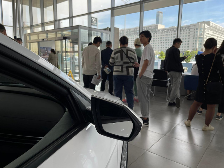 Горожане с самого утра собираются в автосалонах. В салонах на проспекте Туран очереди продолжаются на улице. Многие возмущаются неясными условиями программы.
