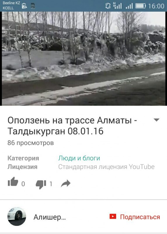 8 января 2016 года в YouТube пользователем Алишером Абдусатаровым размещено видео о том, что на трассе Алматы - Талдыкорган якобы произошел сход оползня. На видео запечатлено, как грязекаменная масса накрывает трассу.