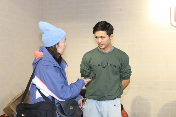Внизу, уже на выходе из здания, сталкиваемся с запыхавшейся девушкой по имени Динара. Она привезла на такси теплую обувь и просит волонтеров выгрузить тяжелые коробки из машины.