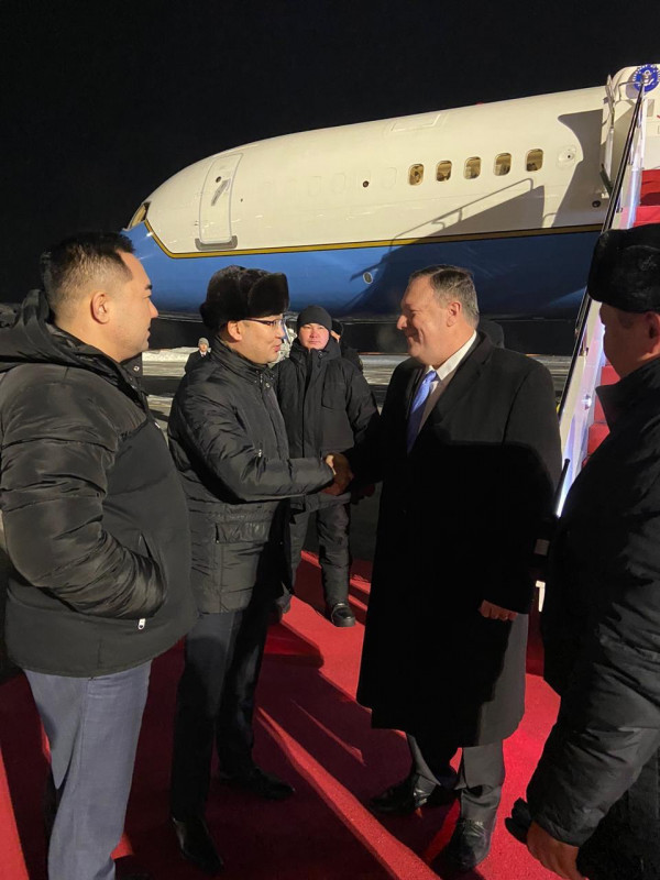 "Государственный секретарь США Майк Помпео прибыл в город Нур-Султан", - говорится в сообщении.