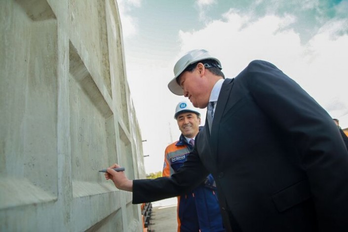 Сегодня в Нур-Султане на территории строящегося завода нового поколения по индустриальному домостроению ModeX состоялся выпуск первого модульного блока, в заливке и выемке которого принял участие глава кабинета министров РК Аскар Мамин. Этот модульный блок уже через две недели будет смонтирован в основание экспериментальной очереди жилого комплекса в столице. 16-этажный дом будет возведен путем сборки готовых модулей.