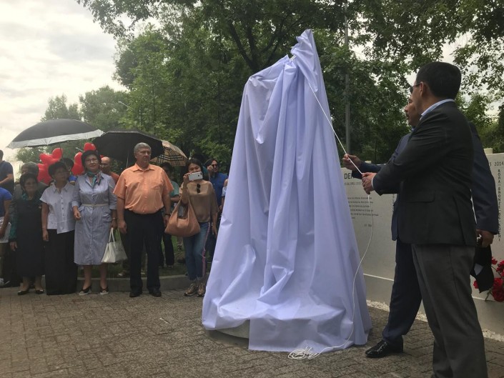 Мемориал открыли под композицию Дениса She Won't Be Mine. На церемонии присутствовали заместитель акима Алматы Арман Кырыкбаев, олимпийский чемпион по боксу Ермахан Ибраимов, тяжелоатлет Илья Ильин, народная артистка СССР Роза Рымбаева, народная артистка Казахстана Жания Аубакирова и многие другие.