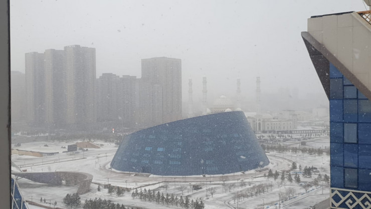 Метель накрыла Нур-Султан, передает Tengrinews.kz.