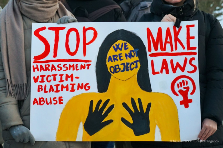 В Астане прошел митинг за введение уголовной ответственности за домогательства, передает корреспондент Tengrinews.kz.