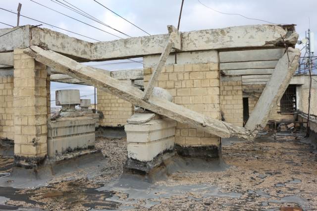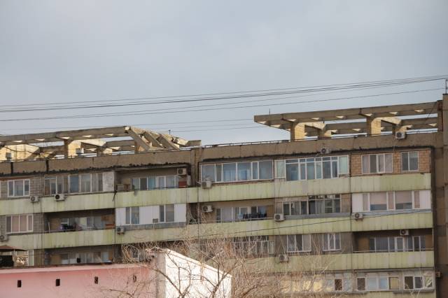 Конструкция на крыше, предназначенная по проекту для защиты строения от прямых солнечных лучей, вот уже 12 лет угрожает безопасности всего дома. У жильцов трескаются и протекают потолки. Оказалось, что еще в 2005 году представители ЧС признавали ситуацию чрезвычайной, сама же проблема возникла годом раньше. Но сих пор дело не сдвинулось с мертвой точки.