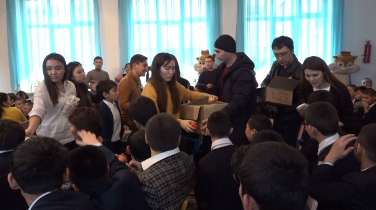 Президент Казахстана Касым-Жомарт Токаев поддержал идею челленджа популярного шоумена Турсынбека Кабатова и столичной молодежи под названием "Мы вместе". В связи с этим молодые волонтеры Туркестана в рамках проекта "Преемственность" подарили нуждающимся в особой заботе детям счастливый день.