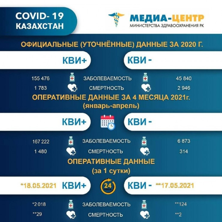 При этом ранее, выступая на заседании правительства с презентацией об эпидситуации в стране, министр здравоохранения Алексей Цой представил заниженные цифры по смертности от COVID-19. На слайде со статистикой по коронавирусу были отображены данные, согласно которым в стране умерли 4095 человек с подтвержденным диагнозом КВИ и 863 пациента с коронавирусной пневмонией.
