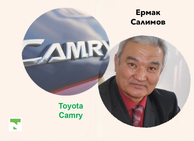 Аким Семея Ермак Салимов ездит на служебном автомобиле марки Toyota Camry черного цвета 2016 года выпуска.