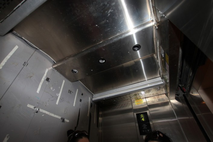 Людям в лифте пришлось изнутри раскрывать створки, чтобы не задохнуться. Фото очевидца.