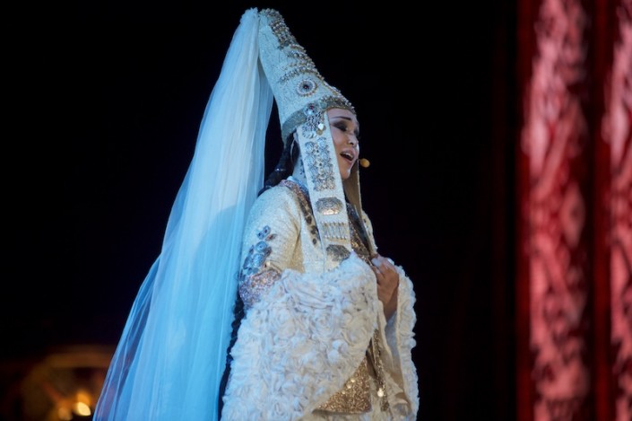 Главные партии блестяще исполнили ведущие солисты театра. Лауреат многих международных конкурсов Меир Байнеш (Биржан) демонстрировал прекрасное актерское и вокальное мастерство. Сара - Заслуженная артистка Казахстана, лауреат государственной премии Майра Мухамедкызы сумела передать нежные чувства своей героини, она убедительно воплотила образ, слушатели одарили артистку горячими аплодисментами.