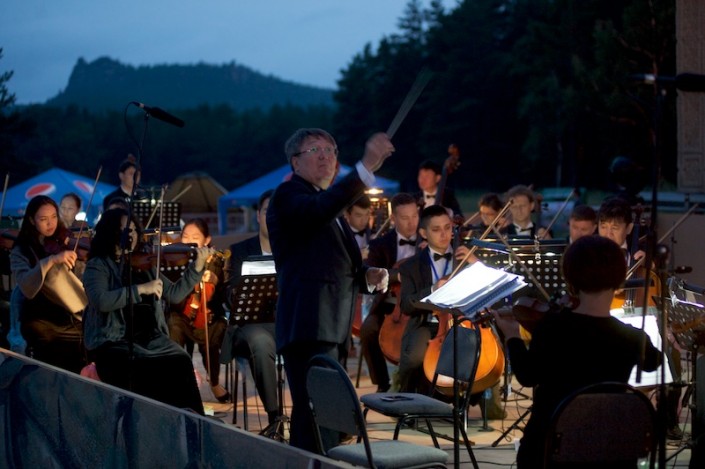 Слышать в сосновом бору звучание Симфонического оркестра "Астана Опера" было особой экзотикой. Музыканты, как, впрочем, и всегда показывали высокий уровень мастерства. Вел оркестр сам дирижер-постановщик - Заслуженный деятель Казахстана маэстро Абзал Мухитдинов. Эталонное звучание демонстрировал и хор под руководством главного хормейстера Заслуженного деятеля Казахстана Ержана Даутова.