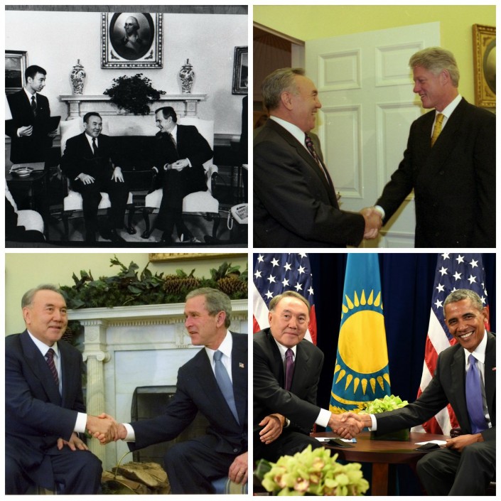 Также Акорда опубликовала фотографии Назарбаева с президентами США.